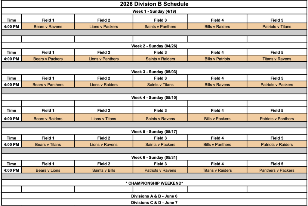 Division B Schedule